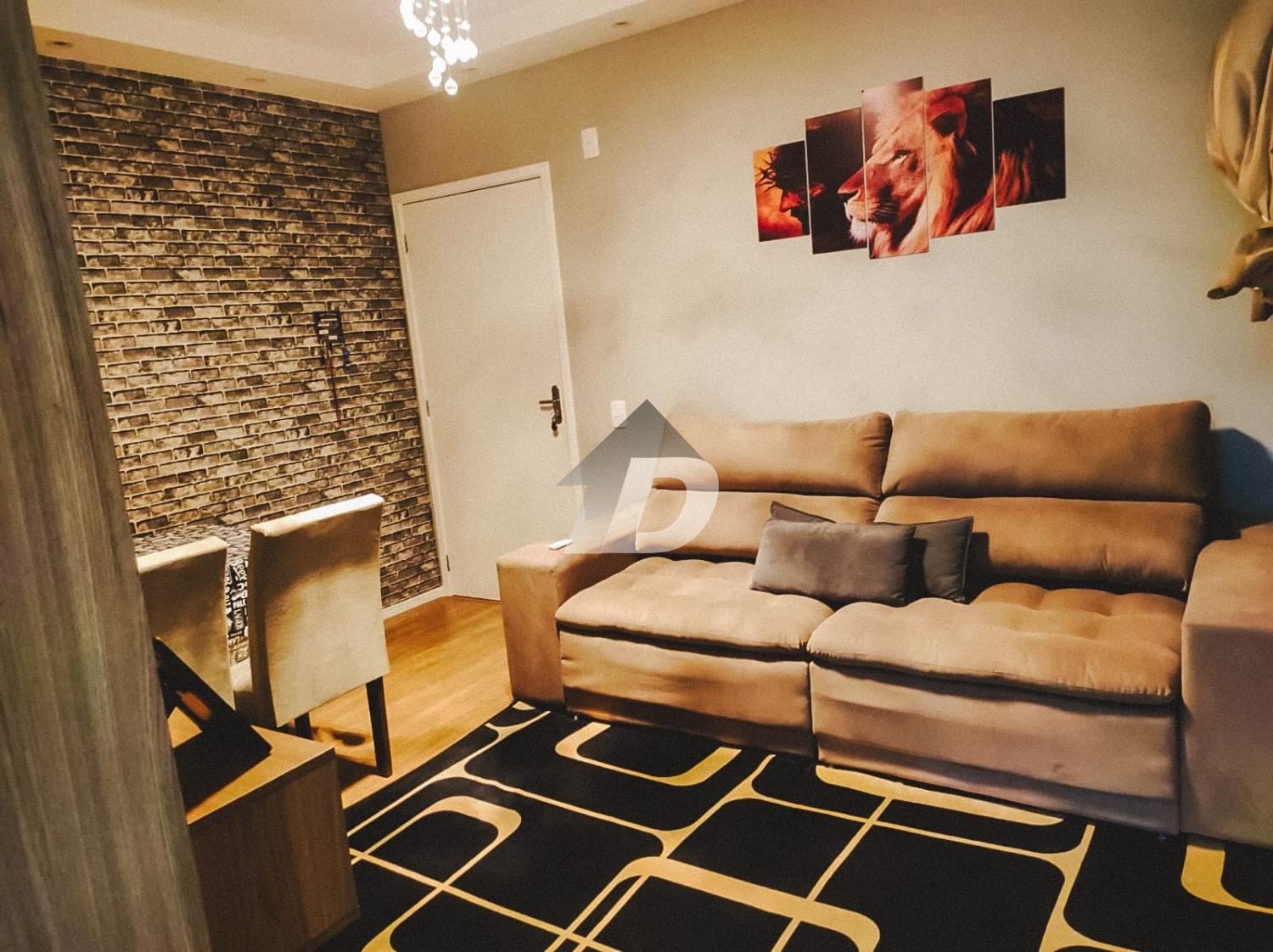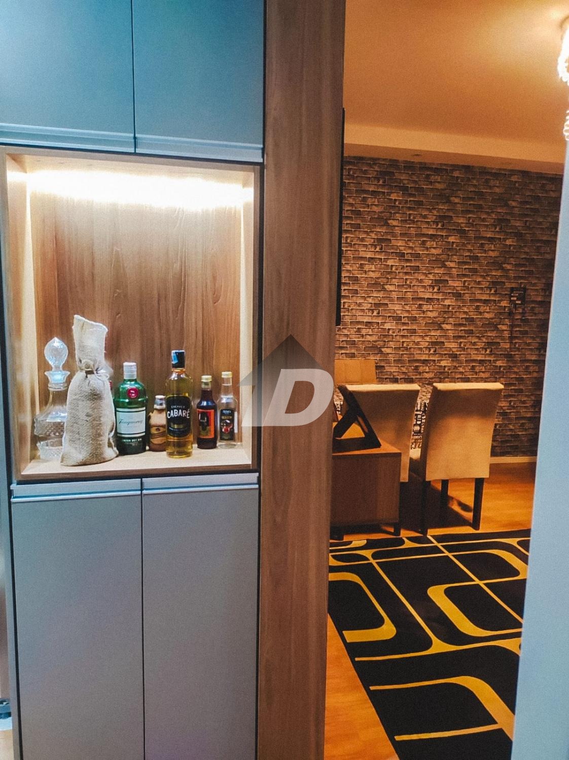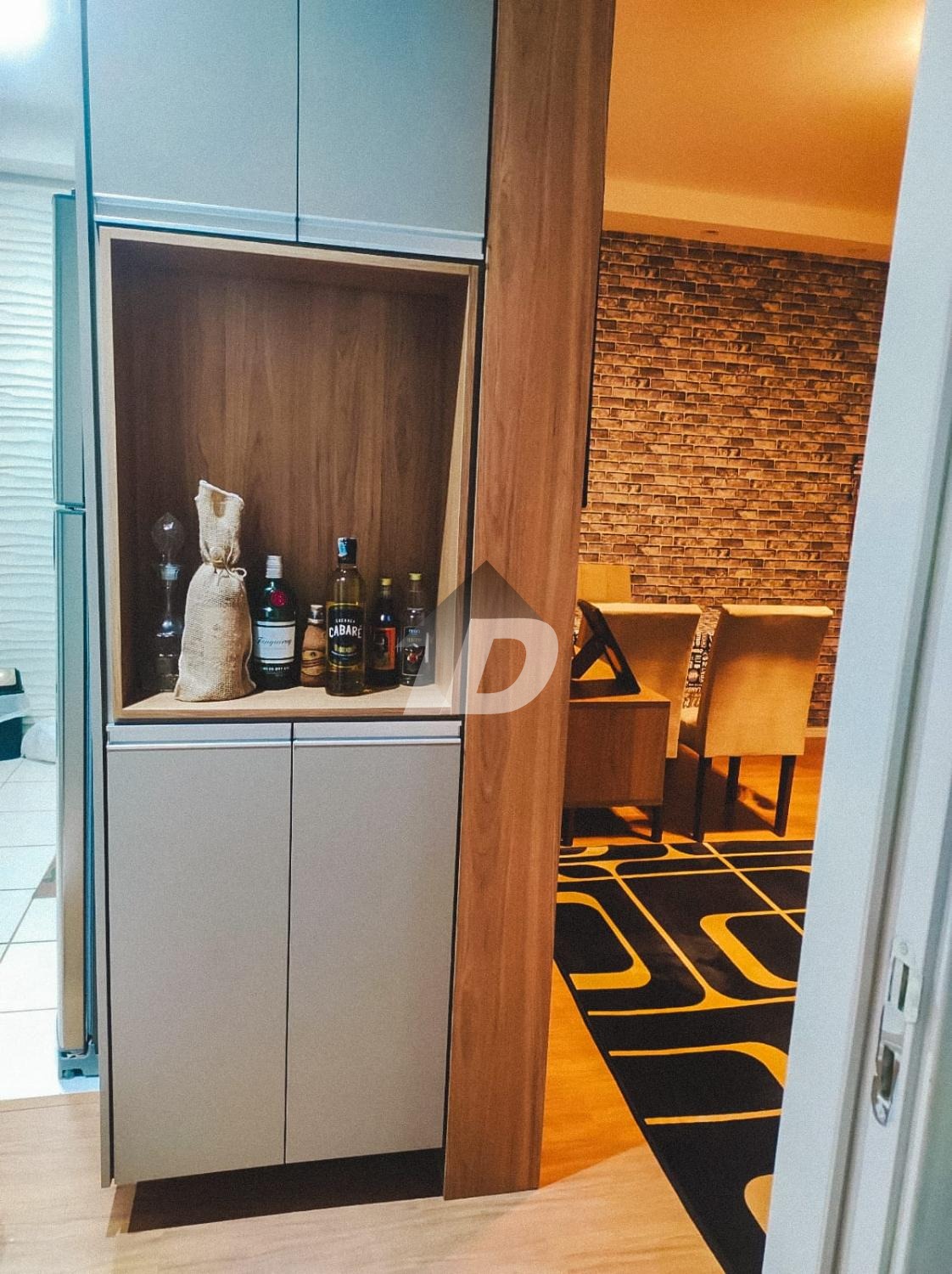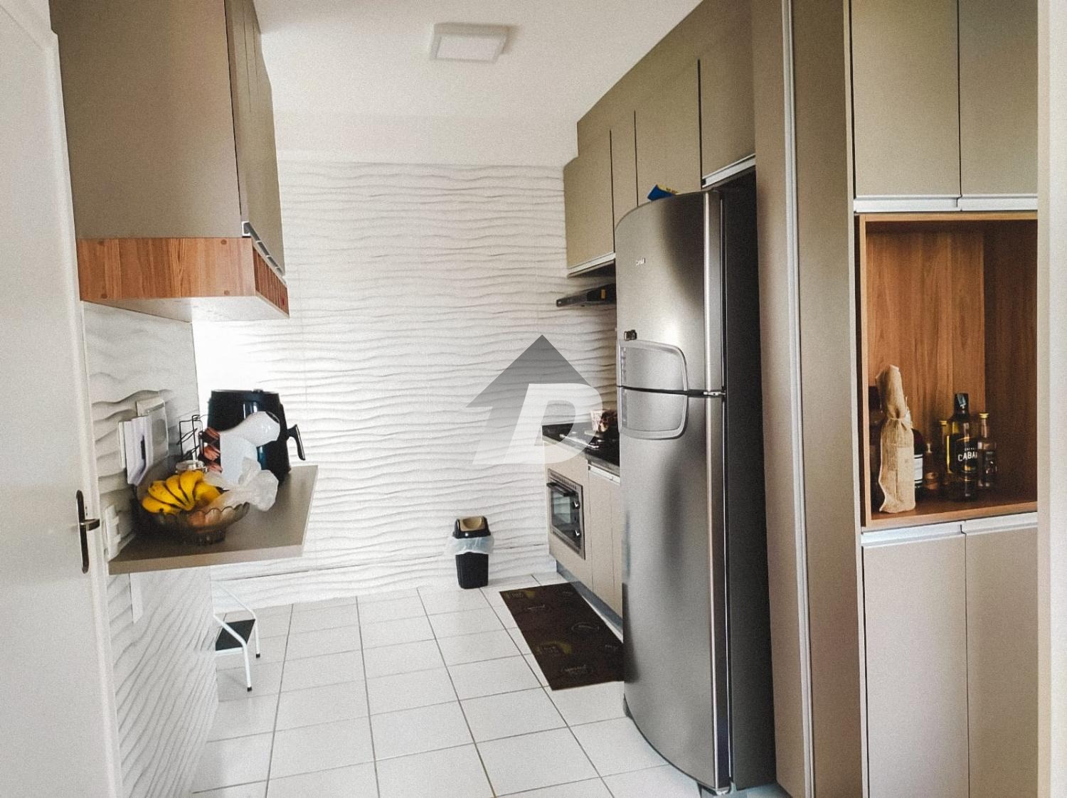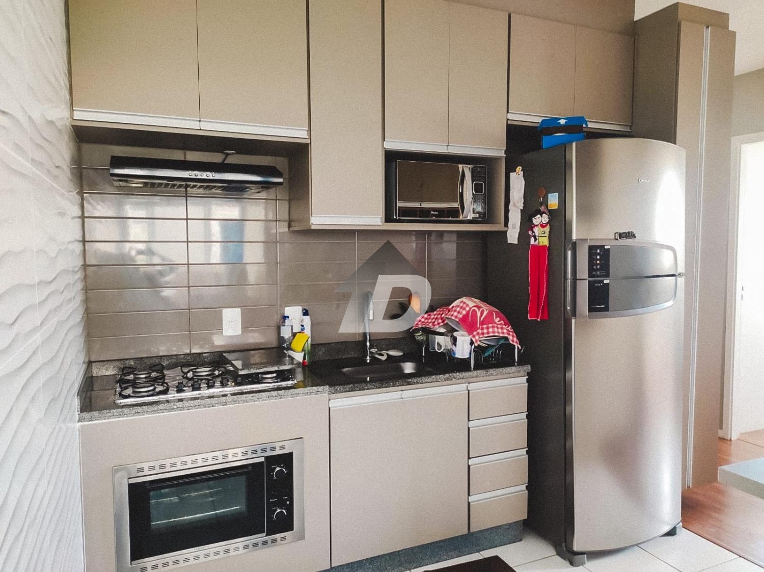 Ao entrar no imóvel, você será recebido por uma sala de estar aconchegante e integrada à cozinha, equipada com utensílios modernos e armários planejados. Tudo harmoniosamente decorado, criando uma atmosfera elegante e funcional.
