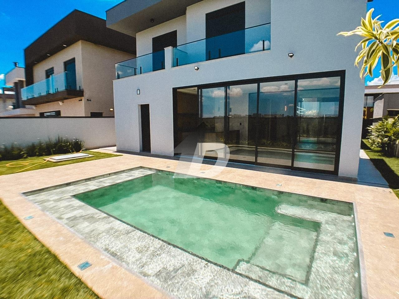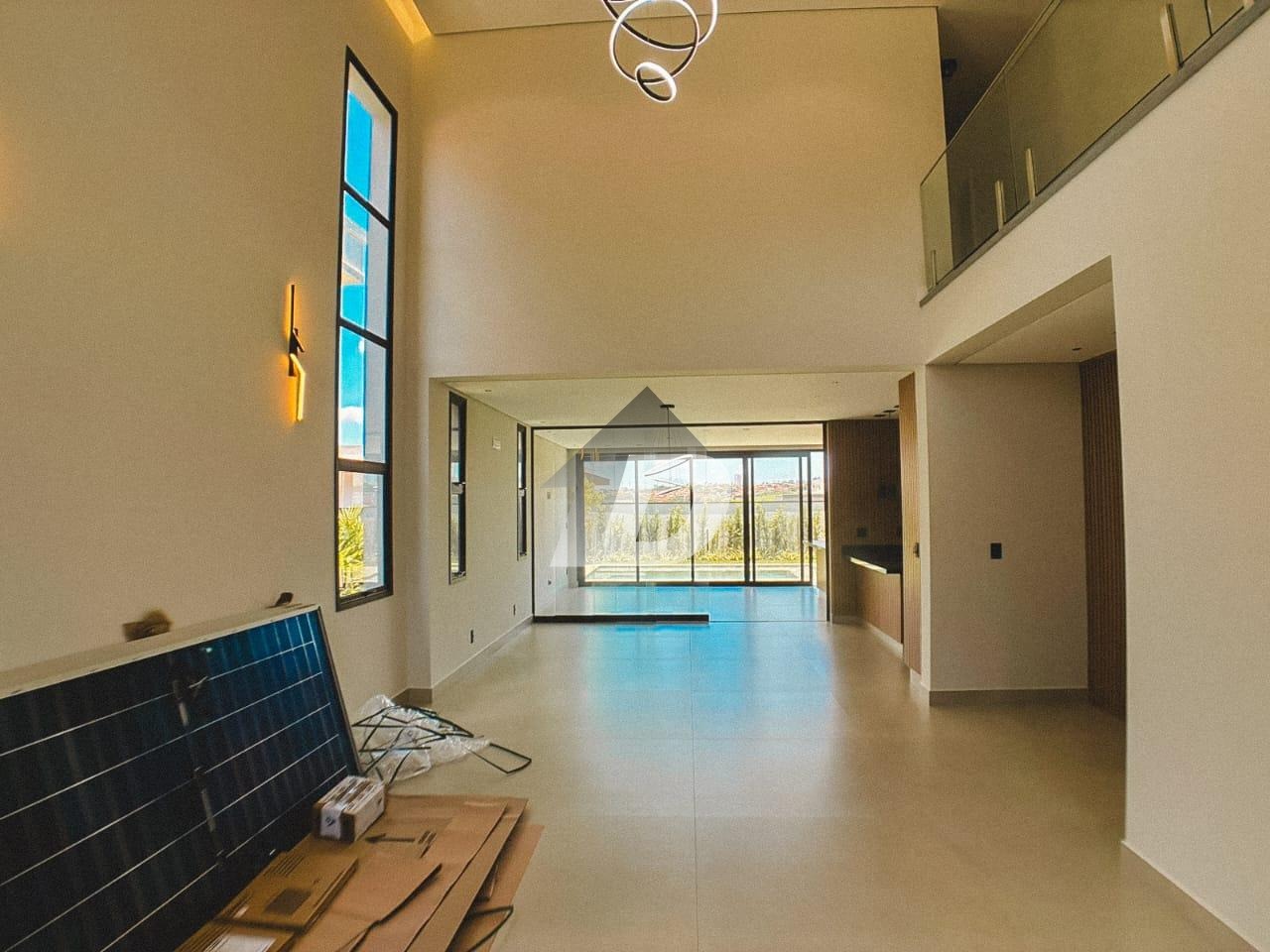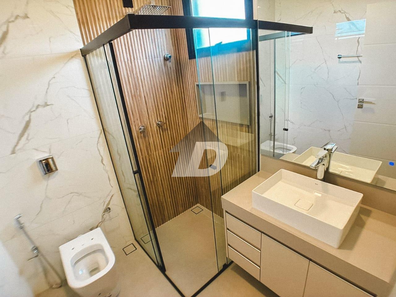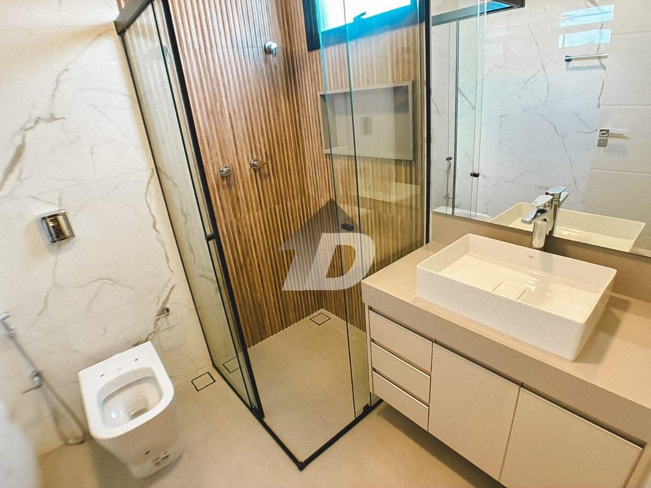 No lazer, o destaque é a piscina com hidro, prainha e infraestrutura para aquecimento solar, perfeita para momentos de relaxamento e diversão em família. O pavimento superior é totalmente revestido em piso vinílico, transmitindo conforto e elegância. São quatro suítes, todas com ar-condicionado, sendo três com armários planejados e sacada. A suíte master é um verdadeiro refúgio, com closet, banheira de imersão com Air Blower, cromoterapia de LED e box duplo, além de uma sacada privativa com vista privilegiada. A casa é equipada com aquecimento central solar, energia fotovoltaica com 10 placas de 500W, e paisagismo cuidadosamente projetado. Todos os banheiros contam com boxes em vidro temperado, espelhos lapidados com fita de LED, gabinetes e acessórios instalados. Lustres e iluminação planejada complementam a atmosfera sofisticada de cada ambiente.