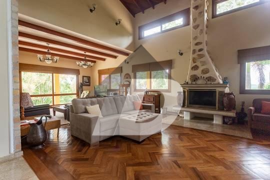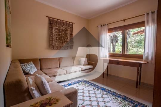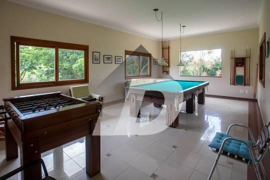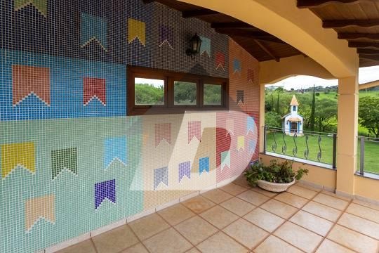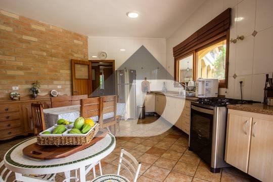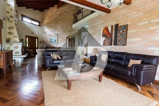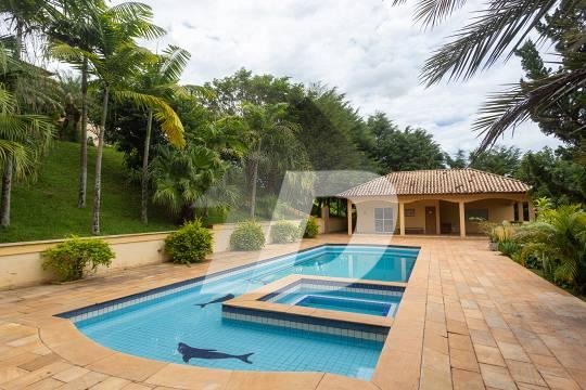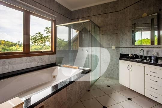Chácara com sala para 03 ambientes integrada com a varanda panorâmica, lavabo, 08 banheiros, escritório, 05 dormitórios, sendo 05 suítes e 01 suíte com closet, sala intima, sala de tv, cozinha com armários e área de serviço. Possui casa de caseiro de 50m². Área de lazer completa com piscina com vestiário e banheiro, churrasqueira, fogão a lenha, lareira, hidromassagem. solarium, salão de jogos, capela e campo gramado. Possui 04 vagas de garagem coberta.
